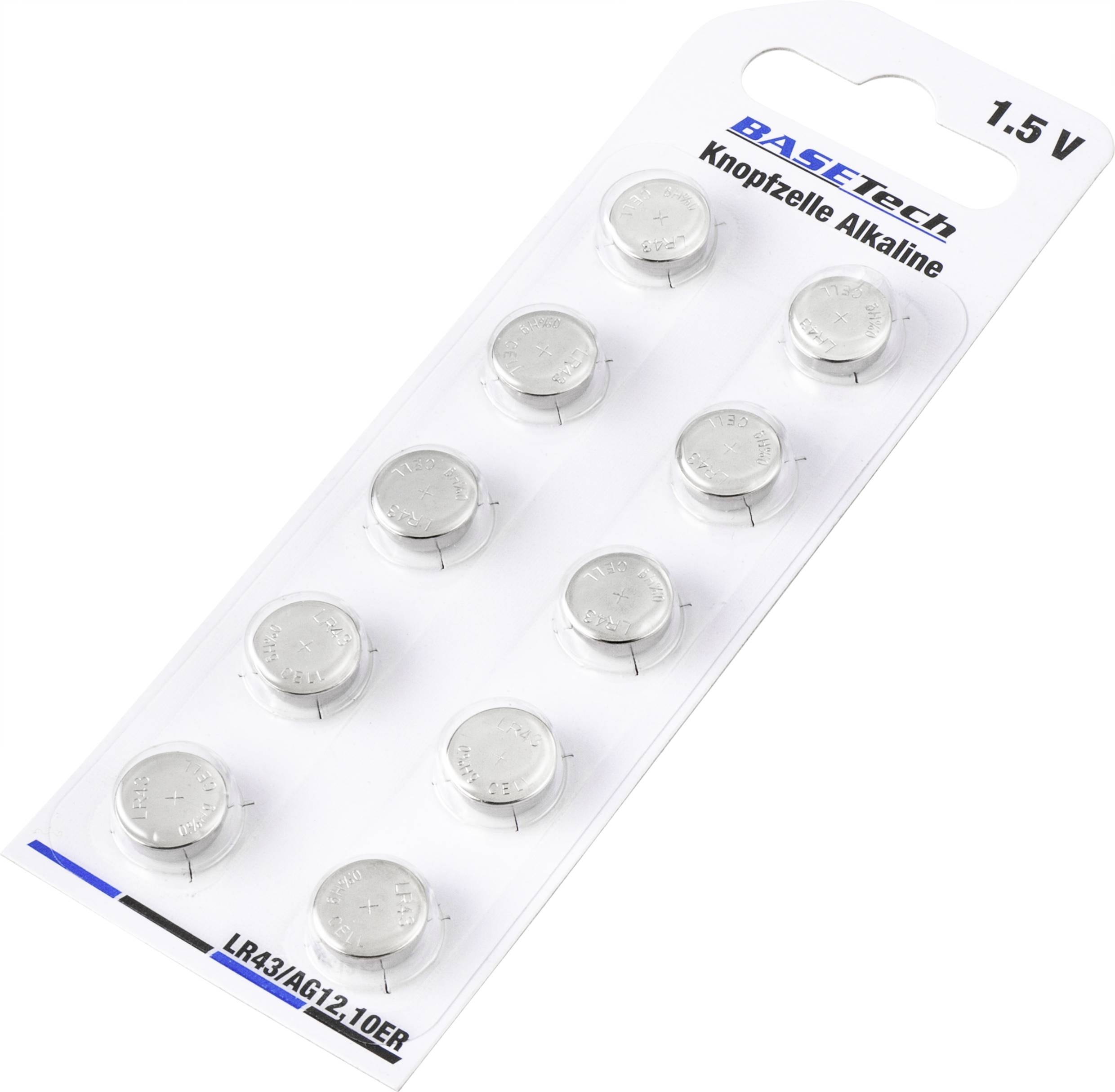 CONRAD Basetech AG12 Knopfzelle LR 43 Alkali-Mangan 100 mAh 1.5 V 10 St.